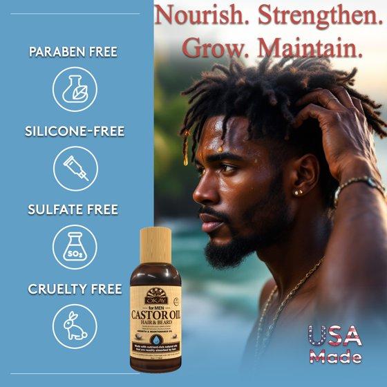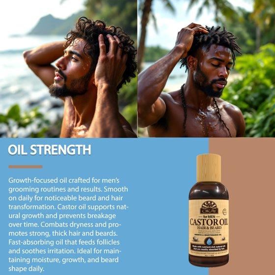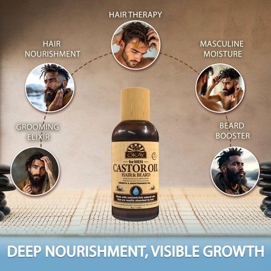 OKAY Men Castor Oil Beard & Hair Growth Oil Lightweight – Moisturizing & Growth-Stimulating Grooming Oil, Silicone & Paraben-Free, All Hair & Beard Types, 4 oz / 118 ml