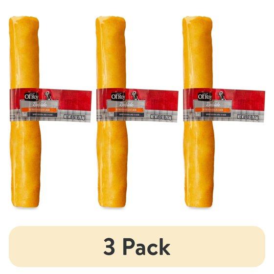 (3 pack) Ol' Roy Chicken Flavor Rawhide 9" Retriever Beef hide Chew for Dogs, Dry, 2.7 oz