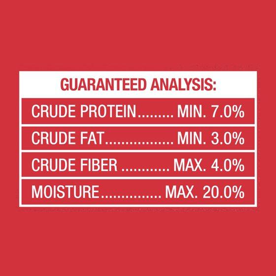 Wheat flour, wheat starch, glucose syrup, chicken meal, water (sufficient for processing), canola oil (preserved with mixed tocopherols), lecithin, sorbic acid (preservative), citric acid (preservative), calcium proprionate (preservative), natural peanut butter flavor, lactic acid (preservative), rosemary extract