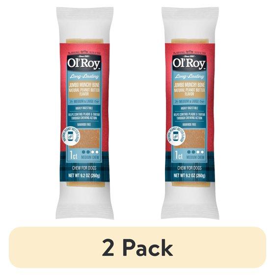 (2 pack) Ol' Roy Long-Lasting Jumbo Munchy Bone Treats Peanut Butter Flavor for Medium and Large Dogs, 9.2 oz