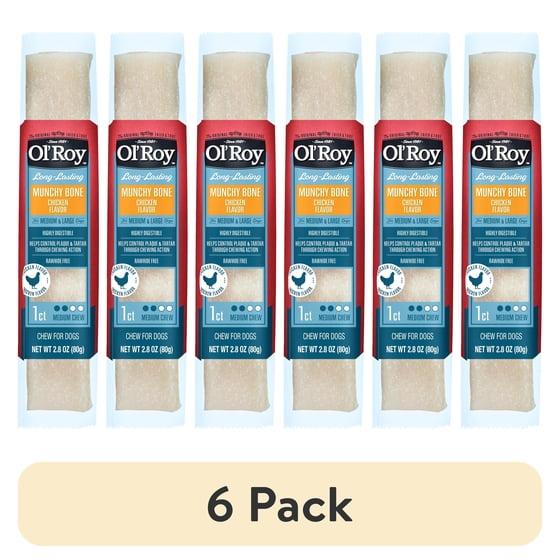(6 pack) Ol' Roy Munchy Bone Chew Treats Chicken Flavor for Medium and Large Dogs, Rawhide-Free, Highly Digestible, 2.8 oz, 1 Count