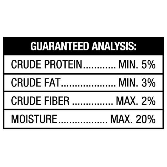 Rice flour, chicken meal, wheat flour, wheat starch, sugar, glycerin, water sufficient for processing, dextrose, liver, powdered cellulose, chicken fat (preserved with mixed tocopherols), gelatin, lecithin, phosphoric acid, potassium sorbate (a preservative), sodium tripolyphosphate
