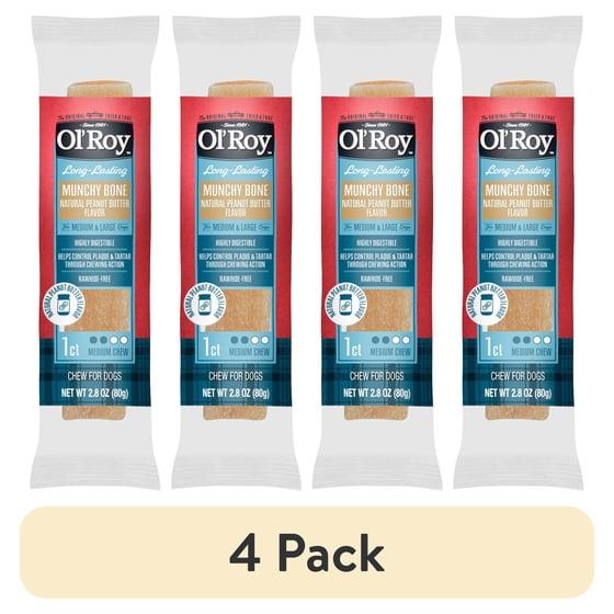 (4 pack) Ol' Roy Munchy Bone Dog Treats, Natural Peanut Butter Flavor, Chew Treats Dogs, 2.8 oz, 1 Count