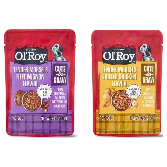 - Ol' Roy Tender Morsels Filet Mignon and Grilled Chicken Cuts in Gravy Variety Pack, 3.5 oz Pouches (8 Pack)
