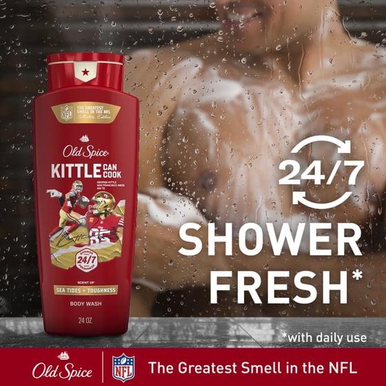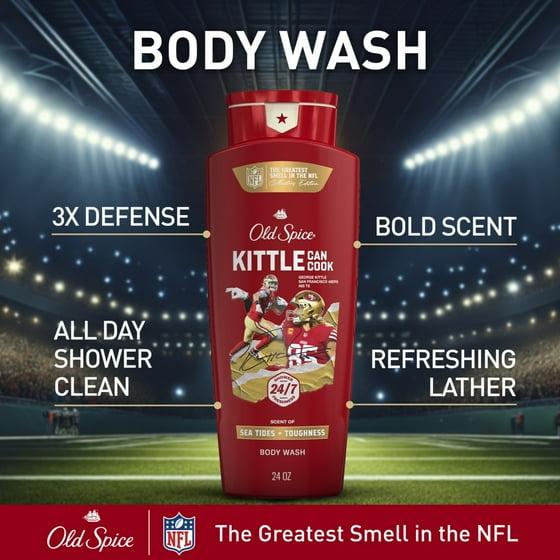 Old Spice Body Wash for Men, NFL Collection, Kittle Can Cook, Scent of Sea Tides + Toughness, 24oz