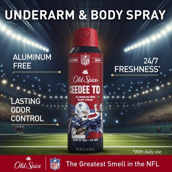 Old Spice Men's Aluminum Free Deodorant Body Spray, NFL Collection, CeeDee Lamb TD, Teak + Toe Taps, 5.1oz