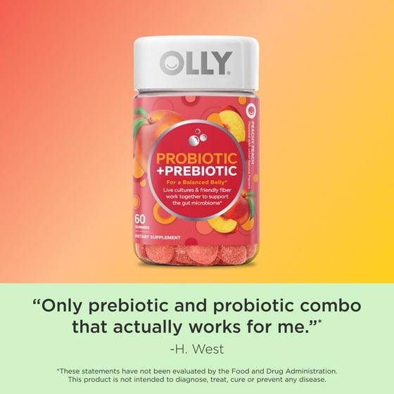 OLLY Probiotic + Prebiotic Gummy, Adult Digestive + Gut Health Supplement, 60 Ct