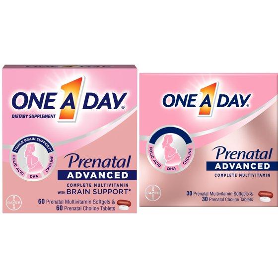 - One A Day Advanced Prenatal Multivitamin with Choline, multivitamins for women, is Our most advanced prenatal multivitamin for brain and cognitive development with three brain-essential nutrients including 110 mg Choline*