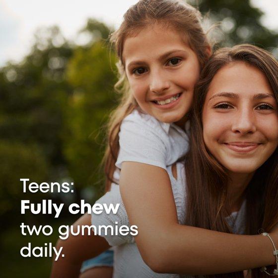 - Yummy flavors they’ll love: Vitamins for girls bursting with apple, cherry, & raspberry flavors, artificially flavored. Teens: Fully chew two gummies daily