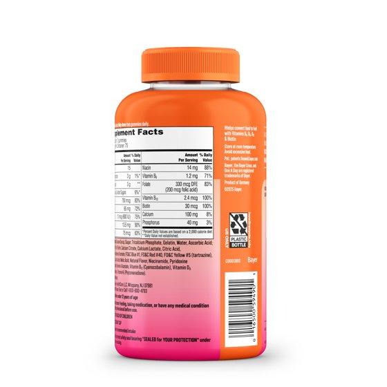 Glucose Syrup, Sucrose, Tricalcium Phosphate, Gelatin, Water, Ascorbic Acid, Natural and Artificial Flavors; Less than 2% of: D-Biotin, FD&C Blue #1, FD&C Red #40, FD&C Yellow #5 (tartrazine), Folic Acid, Niacinamide, Phytomenadione, Pyridoxine Hydrochloride, Vitamin A Acetate, Vitamin B12, Vitamin D3 (Cholecalciferol), Vitamin E Acetate.