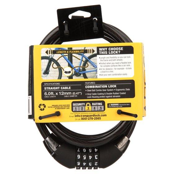Onguard – One Mean Lock. Why choose this cable combination bike lock: It has length and flexibility so you can lock the frame and both wheels. It’s perfect for locking to complex surfaces like a car rack. The length is ideal for wrapping around longer objects. Set your own combination and change it easily no keys needed. Its simple design conceals a number of high-tech advancements in security. The 12mm twisted cable provides excellent protection. It can be used in many situations – bikes, electric bikes, sheds, tools, lawn equipment etc.