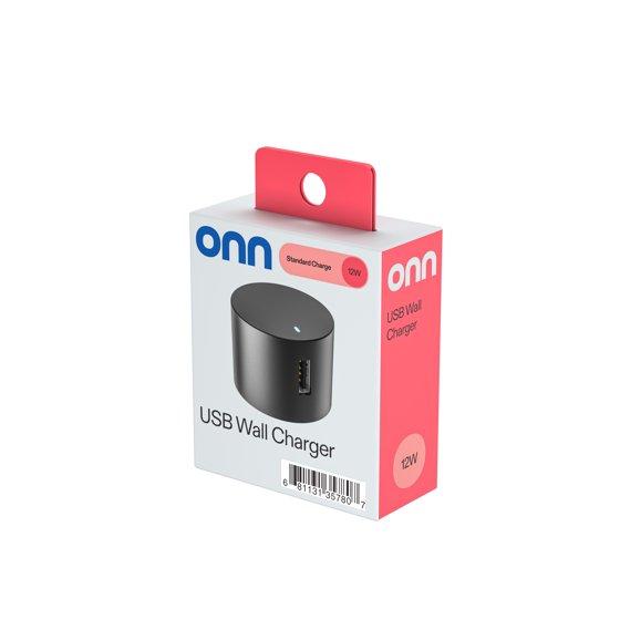 - onn 12W Single USB-A Port Wall Charger, Foldable Plug, Black