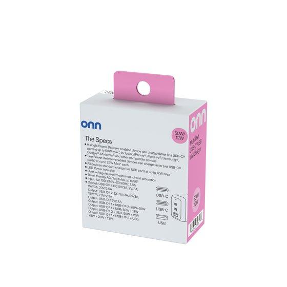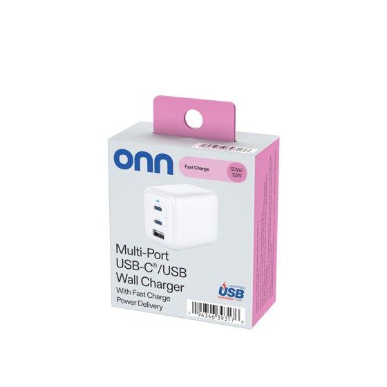 Experience fast and reliable charging with the Onn 62W Multi-Port Wall Charger, designed for seamless compatibility with iPhone, iPad, AirPods, Samsung Galaxy, Note, Pixel, and more. This compact and user-friendly wall charger features a versatile USB-C and USB-A port setup, ensuring your devices are powered up efficiently. Certified by USB-IF, the Onn wall charger offers peace of mind with its over-voltage, current, heat, and short circuit protection. Ideal for global travel, its foldable plug design and input of 100-240 volts make it convenient to use anywhere, and its sleek white finish matches any décor.