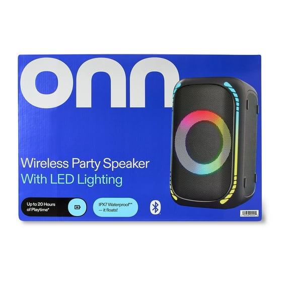 Bust a move! Take your party to the next level with our Wireless Party Speaker. With a vibrating bass that grooves along with your music, this speaker is sure to show out - for 20 hours to be exact - now that's impressive stamina! Pair with another one of our onn. speakers for a more immersive sound or just enjoy on its own. It's even IPX7 waterproof so you won't have to worry about a party foul ruining your night! Doesn't that sound like music to your ears? Groove onn.