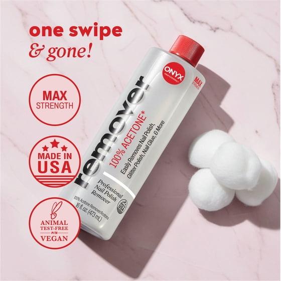 - Professional grade and maximum strength make Onyx's Acetone Nail Polish Remover stand above the rest, giving you nail salon-quality results at home