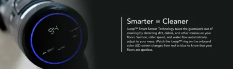 - Real-Time Clean Indicator: Visual iLoop ring on LED screen changes from red to blue as messes are removed, providing real-time feedback on cleaning progress