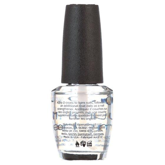 - Prevents color stains and discoloration. OPI nail strengthener comes in 0.5 fl Fl Oz bottle.