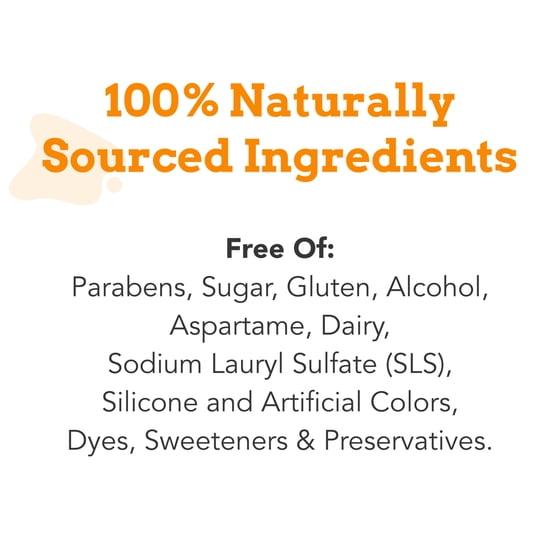• 100% NATURALLY SOURCED INGREDIENTS: Free from parabens, sugar, gluten, silicones, alcohol, sodium lauryl sulfate (SLS), dairy, aspartame and artificial preservatives, colors, dyes & sweeteners