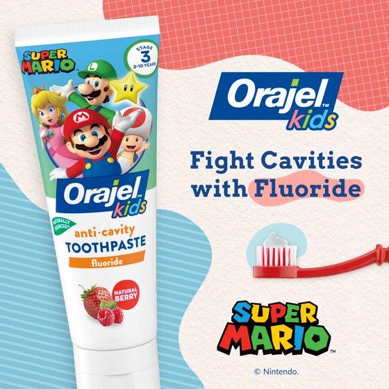 Orajel Kids Super Mario Anti-Cavity Fluoride Toothpaste, Natural Berry Flavor, 4.2oz Tube
