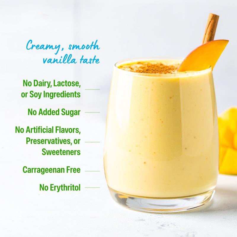 Orgain Organic Protein Blend (Organic Pea Protein, Organic Brown Rice Protein, Organic Mung Bean Protein, Organic Chia Seed), Organic Natural Flavors, Orgain Creamer Base (Organic Acacia, Organic High Oleic Sunflower Oil, Organic Rice Dextrin, Sunflower Lecithin, Organic Rosemary Extract), Organic Agave Inulin Fiber, Organic Reb A (Stevia Extract), Sea Salt, Organic Acacia, Organic Guar Gum, Xanthan Gum.