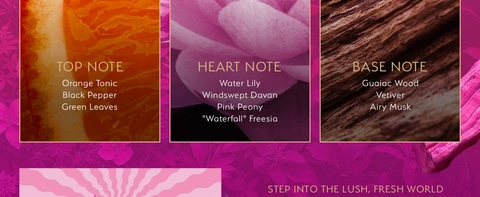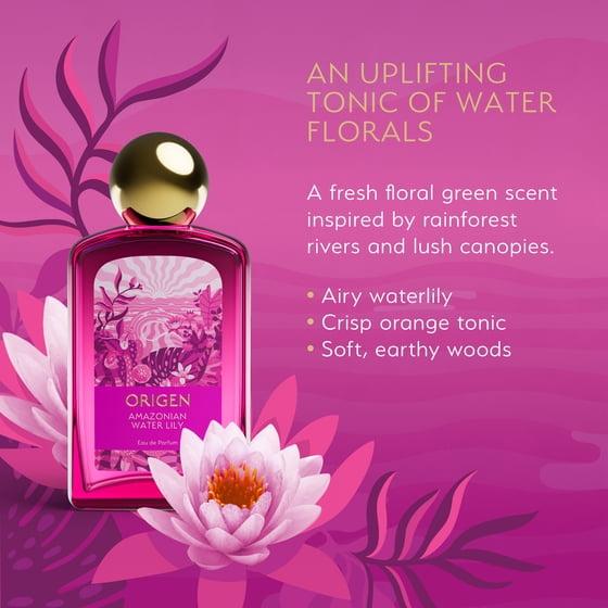 - Fresh and Watery Floral Citrus scent inspired by rainforest rivers and lush canopies. Notes of crisp orange tonic, airy waterlily, and soft earthy woods combine to evoke the vibrant spirit of the rainforest.