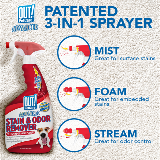 - PATENTED 3-IN-1 SPRAYER: This multifunction sprayer allows you to tackle any kind of stain that comes your way, and eliminate it the first time