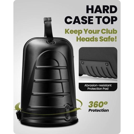 - HARD SHELL CASE OFFERS MAXIMUM GOLF CLUB PROTECTION - Golf Travel Cover combines crush resistant Hard Shell ABS Top with Soft Sided all weather 1680D Ballistic Nylon Fabric Body and Unique 2x thickened cushion layer for and long-lasting durability.