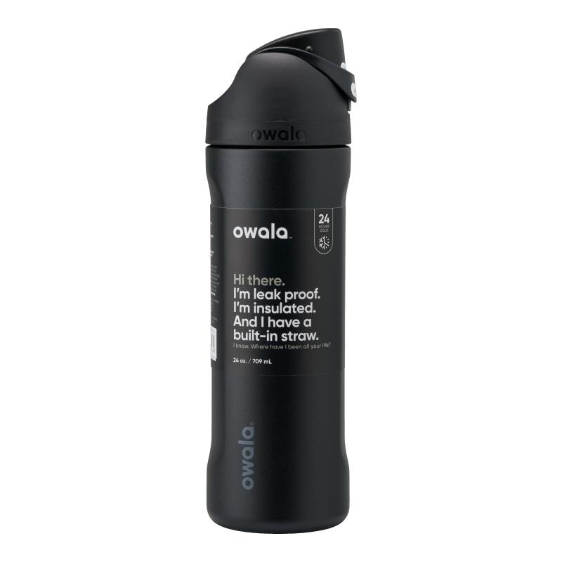 - Owala FreeSip Bottle, 24oz Black: FREESIP TECHNOLOGY - Welcome to the future of drinking. This insulated water bottle with straw puts the power in your hands: sip or swig. The two-way straw lets you sip water or the wide-mouthed opening to chug to your heart’s content. The choice is yours.