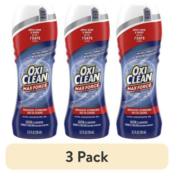 - OxiClean Max Force gel lets you pretreat stains now, then wash up to seven days later for cleaning that fits your schedule