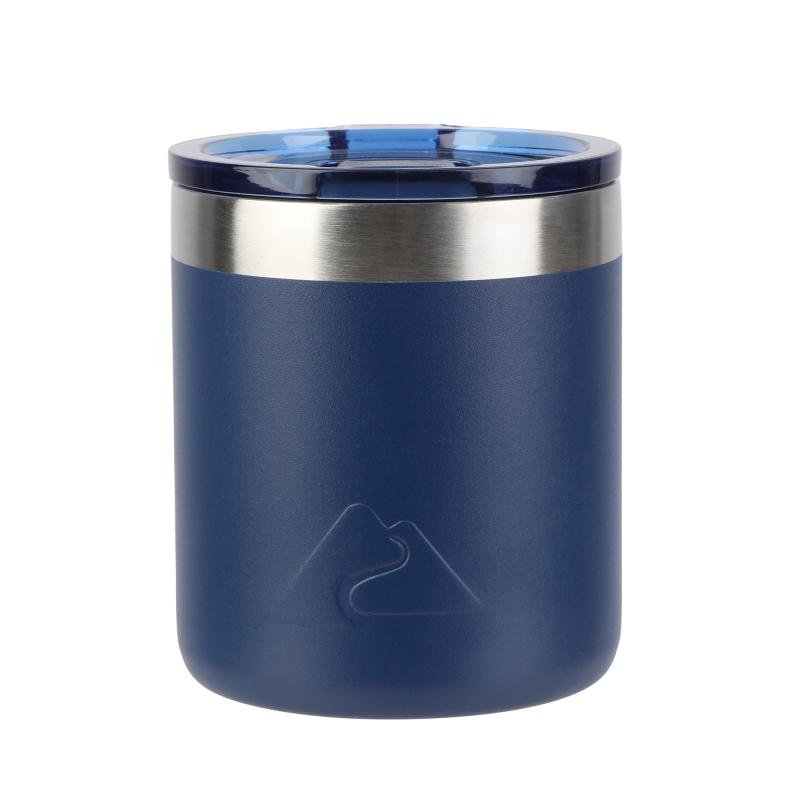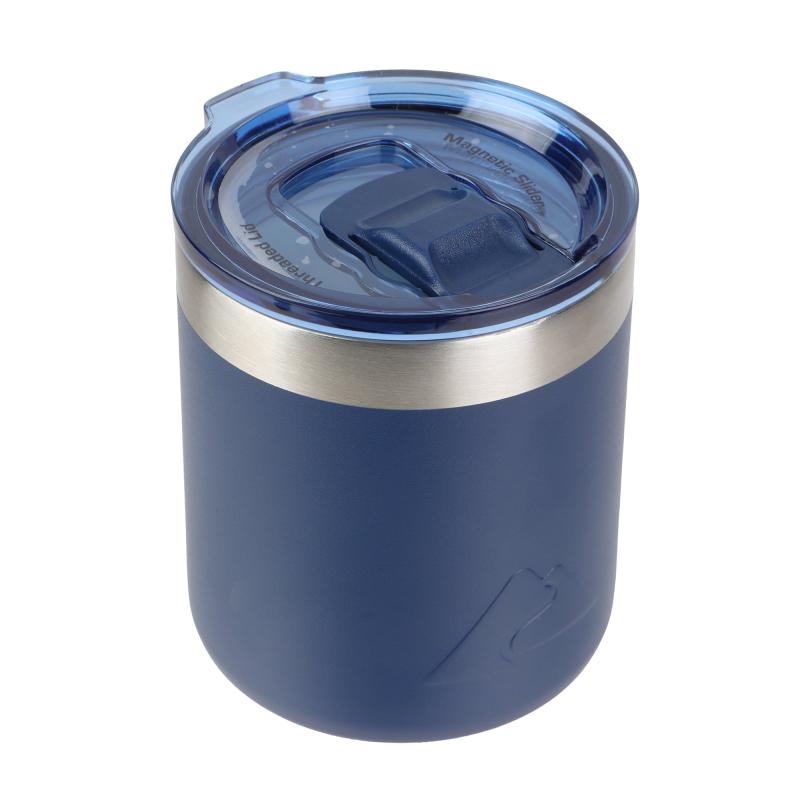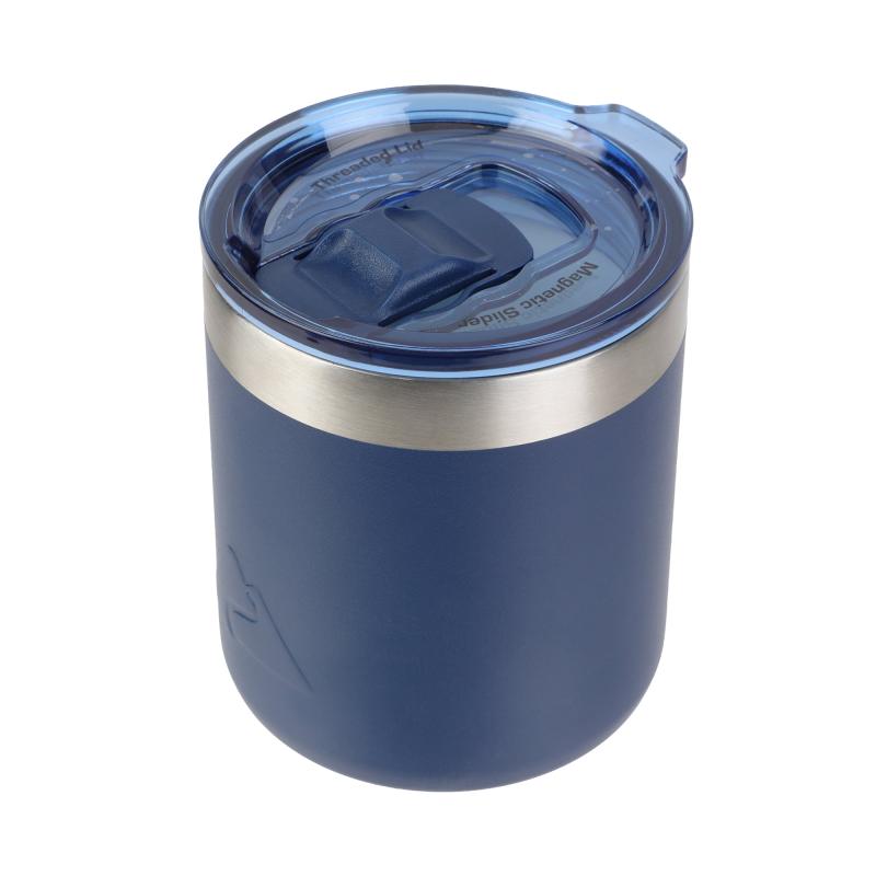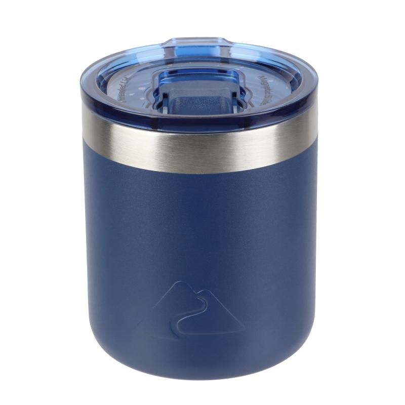 Ozark Trail 10oz Ceramic Lined Stainless Steel Lowball Tumbler with Magnetic Tritan Transparent Slider Lid, Navy Blue