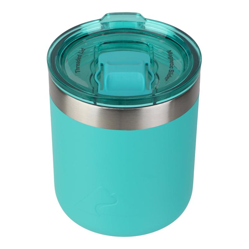 Ozark Trail 10oz Ceramic Lined Stainless Steel Lowball Tumbler with Magnetic Tritan Transparent Slider Lid, Teal