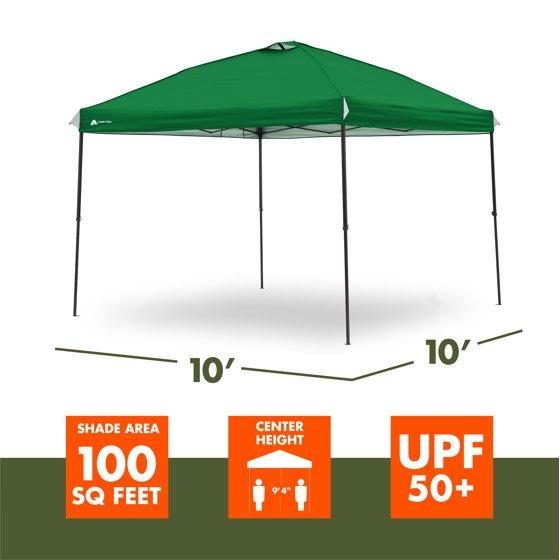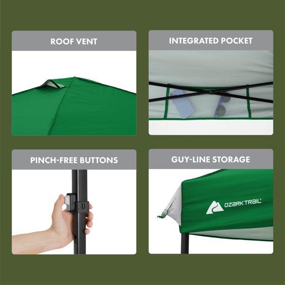 Ozark Trail 10x10 Instant Pop Up Canopy Tent with Simple Push Setup – Straight Leg Pop-Up Tent for Tailgating, Camping & Events, Bright Green