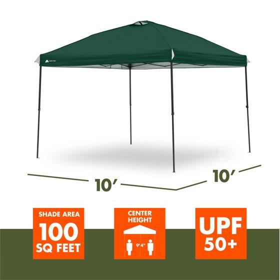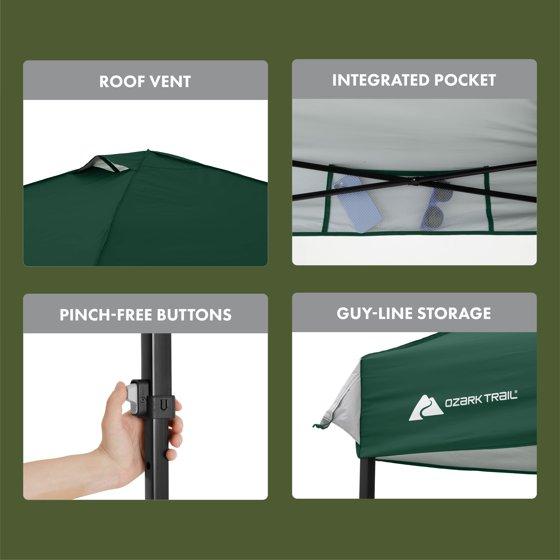 Ozark Trail 10x10 Instant Pop Up Canopy Tent with Simple Push Setup – Straight Leg Pop-Up Tent for Tailgating, Camping & Events, Dark Green