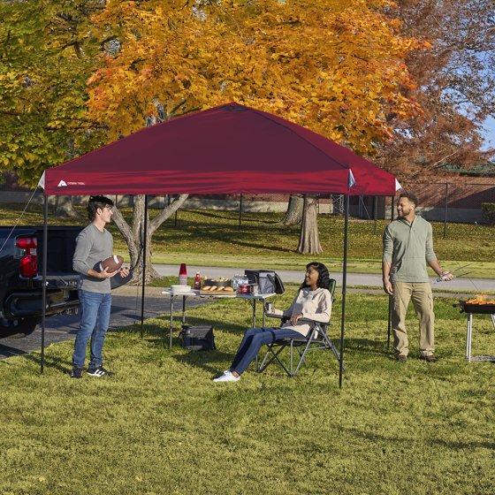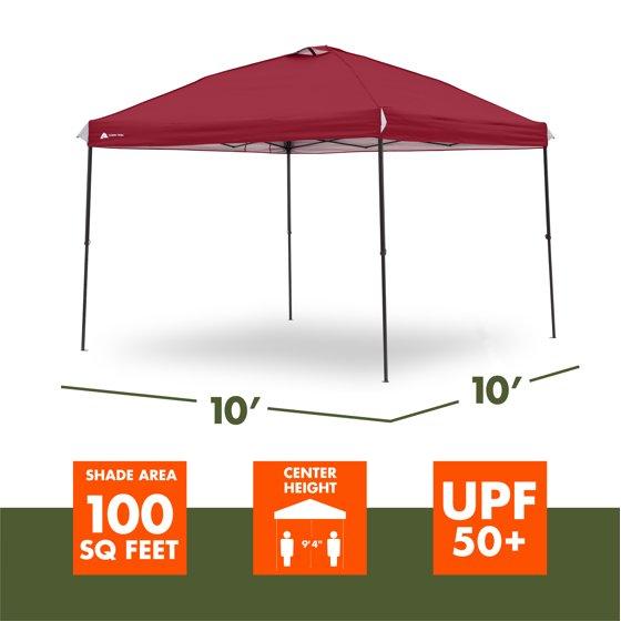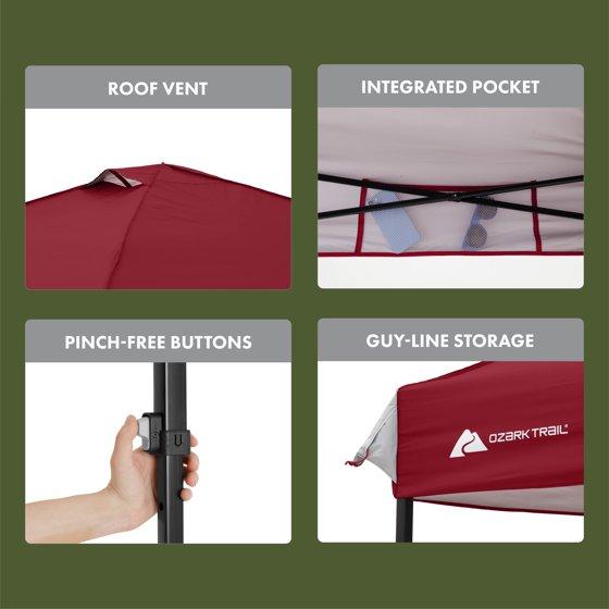 Ozark Trail 10x10 Instant Pop Up Canopy Tent with Simple Push Setup – Straight Leg Pop-Up Tent for Tailgating, Camping & Events, Dark Red