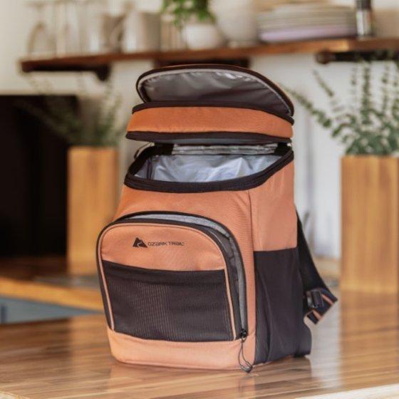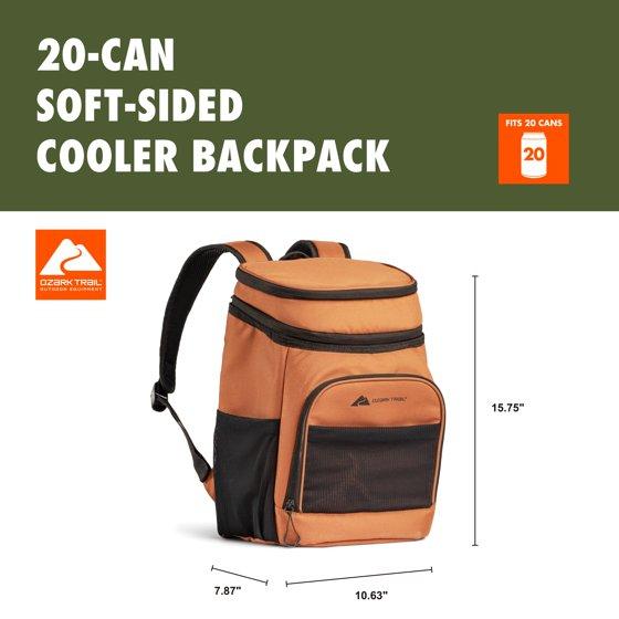 Ozark Trail 15 qt 20-Can Soft-Sided Cooler Backpack, Brown
