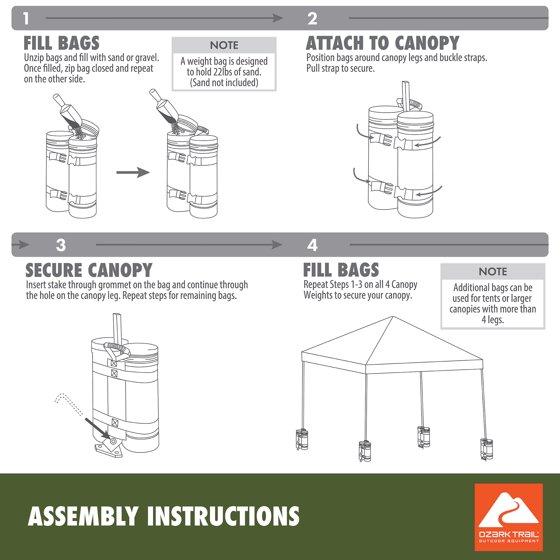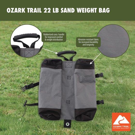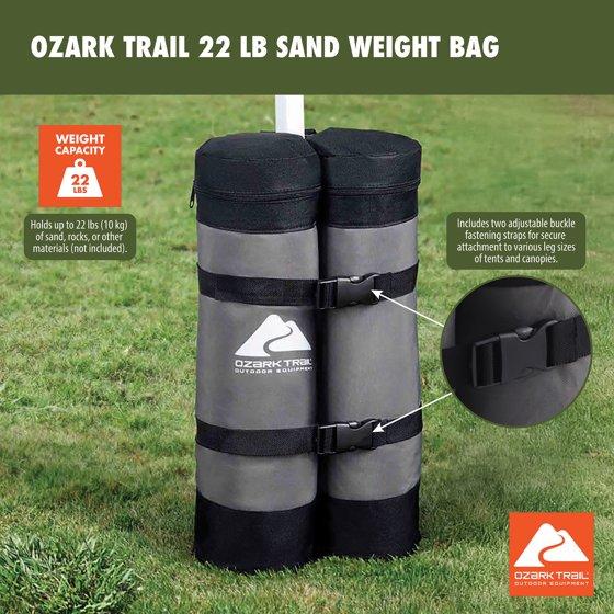 - Ozark Trail weight bag measures 13.78 x 16.53in and can hold up to 22 lbs. (10 kg) of sand, rocks, or other materials (not included) per bag.