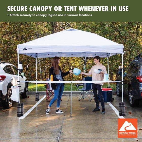 - Includes two adjustable straps with buckles for secure attachment to various leg sizes of tents and canopies.