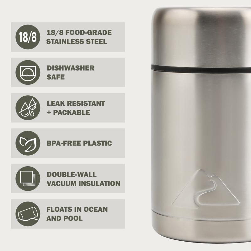 - Double-wall vacuum insulation keeps food hot or cold for hours