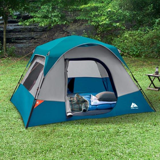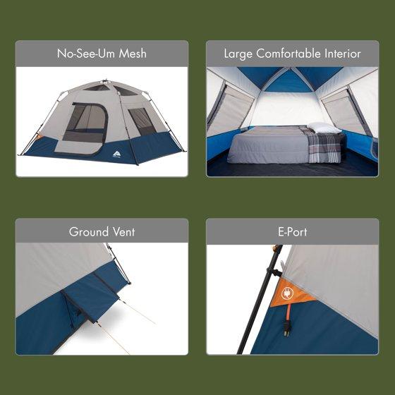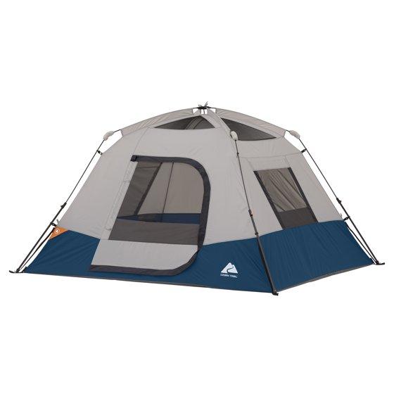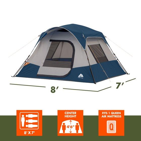 Ozark Trail 4 Person Family Instant Cabin Tent, 8' x 7' x 54", made with recycled materials, blue