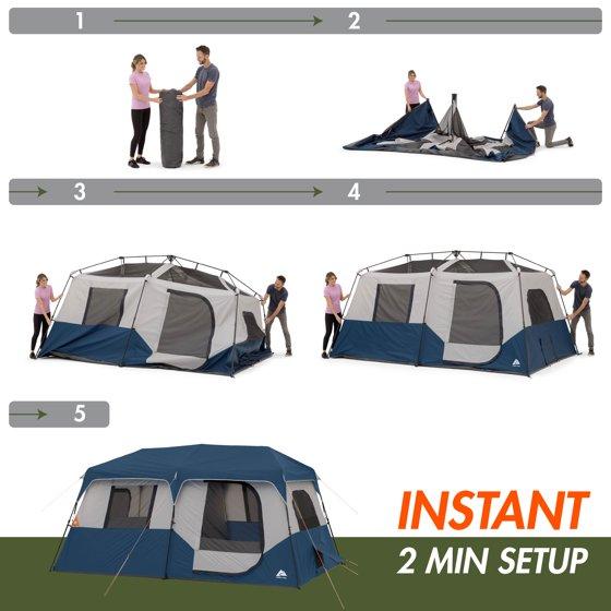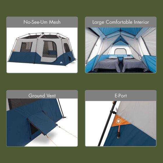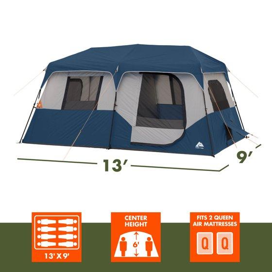 Ozark Trail 8 Person Family Instant Cabin Tent, 13' x 9' x 72", made with recycled materials, blue