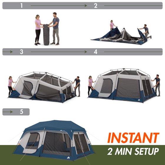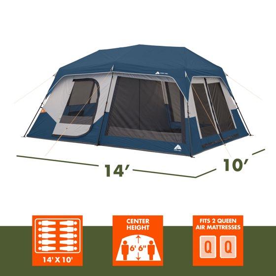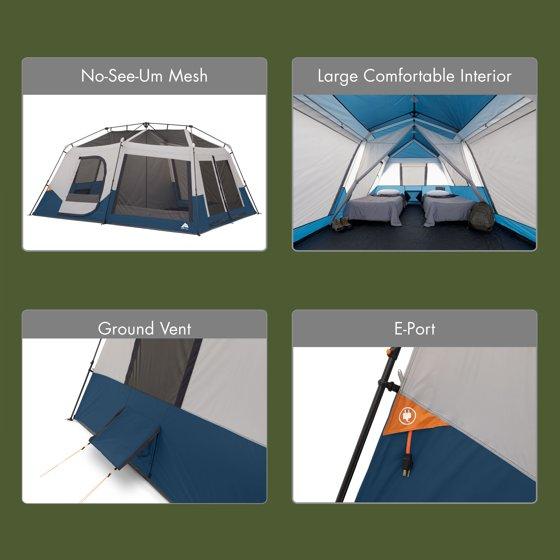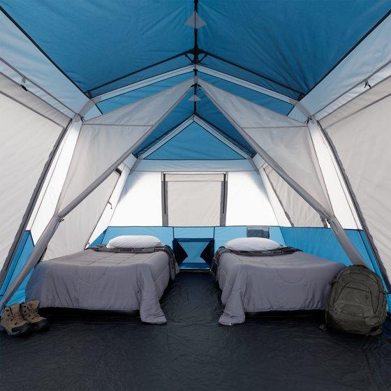 Ozark Trail 10 Person Family Instant Cabin Tent, 14' x 10' x 78", made with recycled materials, blue