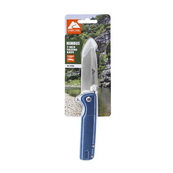 Ozark Trail 7 inch Folding Knife with 3" D2 Blade Dual Clip 4" Aluminum Handle for EDC