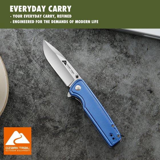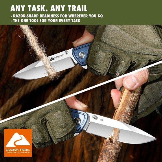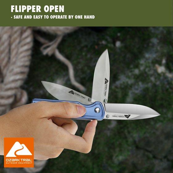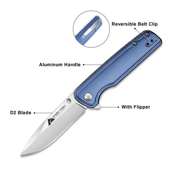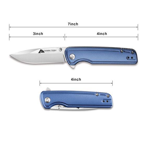 Ozark Trail 7 inch Folding Knife with 3" D2 Blade and 4" Aluminum Handle,Reversible Belt Clip