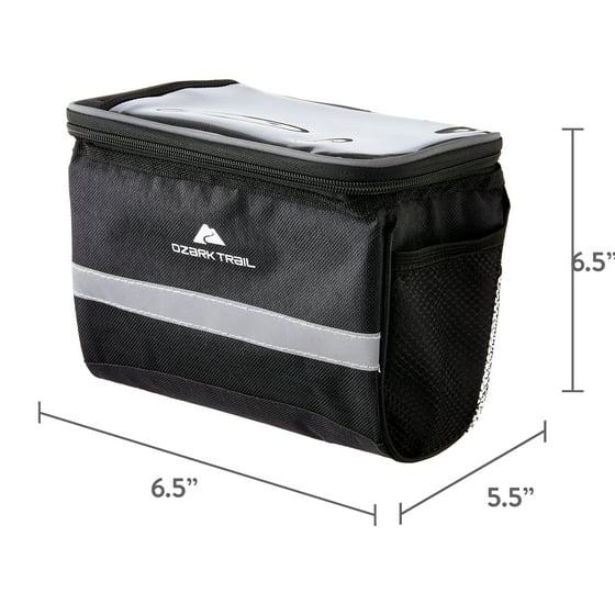 Bring all you need for every biking adventure thanks to the Ozark Trail Handlebar Cooler Bag with Smartphone Pocket! This handlebar bag has a simplistic design that will coordinate well with any bike. Featuring a large insulated main pocket, this bag can easily hold anything from drinks and snacks to keys, cameras, or other items needed for your adventure. The top of the cooler bag has a clear, touchscreen-compatible smartphone window pocket so you can control your phone without getting it out. There are also two side mesh pockets for added storage. This handlebar bag requires zero tools for installation – simply attach using the straps on the back of the bag. Great storage and super convenient…look no further than the Ozark Trail Handlebar Cooler Bag with Smartphone Pocket.Adventure is where memories are made, whether it's campouts in the back yard with the kids, Saturdays at the river with friends, or a week in the wilderness alone. Ozark Trail helps you and your family create everyday adventures with gear and accessories built with you in mind. From backpacks to tents, they're rugged, dependable, and priced to be practical. Because adventure is not a destination; it's a lifestyle.