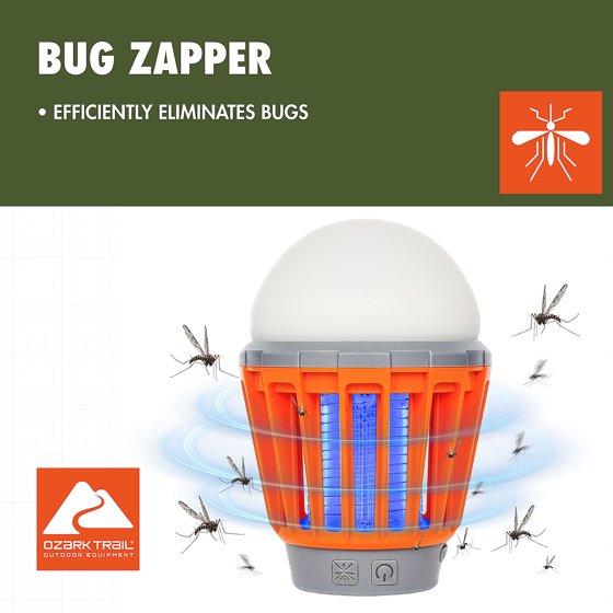 Ozark Trail Bug Zapper with LED Lantern, Rechargeable Battery, for Ourdoor Use, Orange Colour