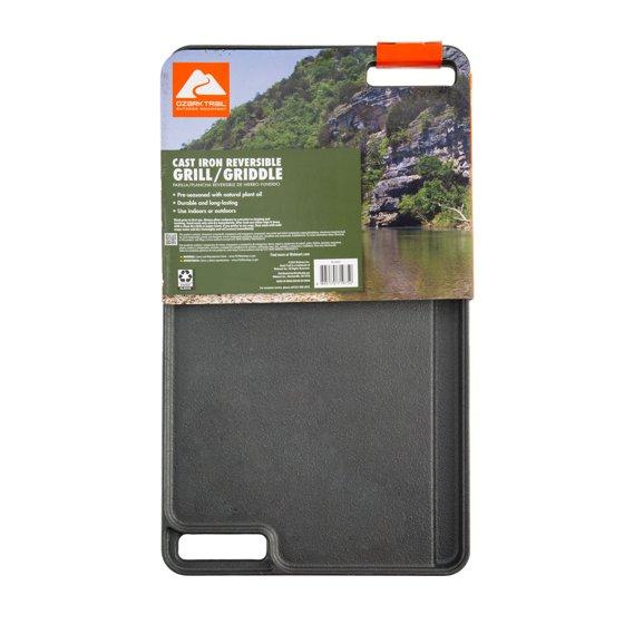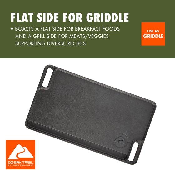 Ozark Trail Deluxe Cast Iron Reversible Grill Griddle Plate, Black, 16 x 9 Inch