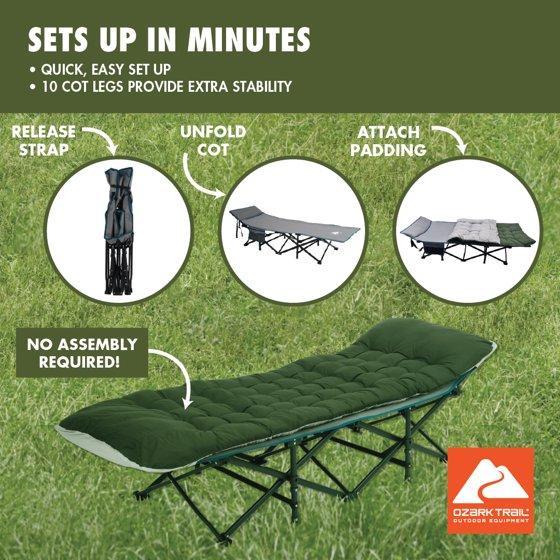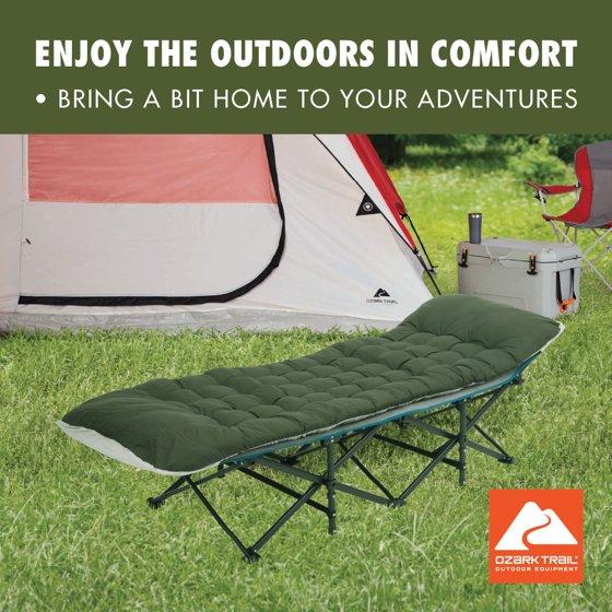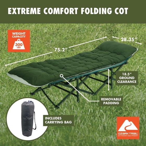 Ozark Trail Extreme Comfort Folding Sleeping, Guest Bed Cot with Comfort Mattress, Polyester Fabric, Built-in Pillow, Cushioned for 2-Sided Comfort.