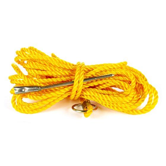 The Ozark Trail Heavy Duty Twenty Five foot Twisted Poly Stringer is a must-have fishing accessory to use in fishing. This fishing stringer's tapered Steel needle makes for easy stringing. Then attach the rope to the metallic ring, going through it and securing the fish in place. Keep your catches fresh and delicious with the Ozark Trail Heavy Duty Poly Stringer.
