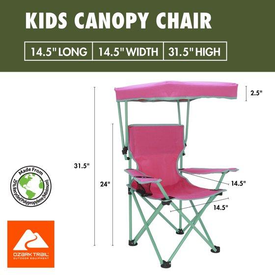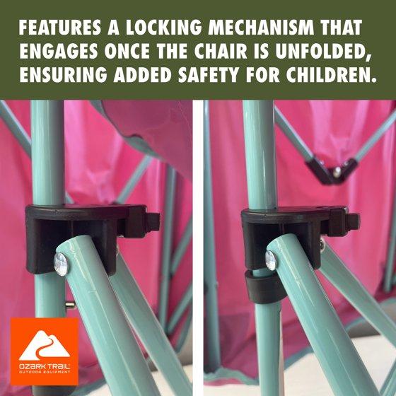 Ozark Trail Kids Canopy Chair with Safety Lock (125 lb. Capacity), Pink/Green