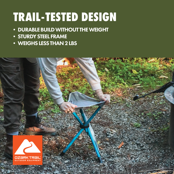 - The Ozark Trail Camp Stool offers stable comfort from a compact seat. A great choice for campers, hunters, and other outdoors lovers, this comfortable tripod design pairs a sturdy steel frame and durable, water-resistant polyester seat.